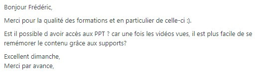 Et si votre demande permet de compléter la formation, je peux même réaliser une vidéo supplémentaire.